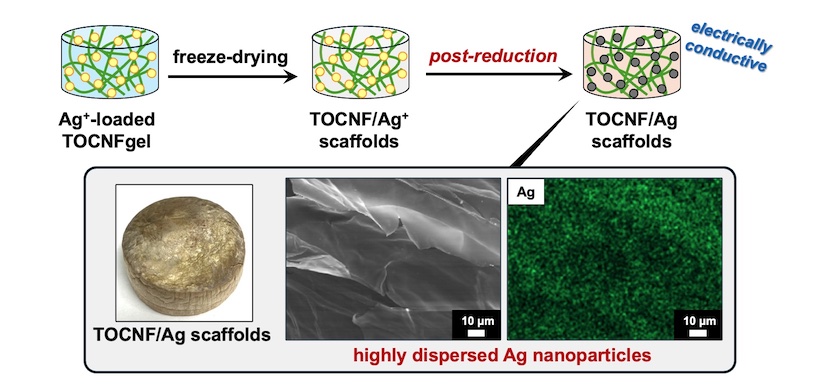 Fabrication of electrically conductive cellulose nanofiber scaffolds with Ag nanoparticles via post-reduction